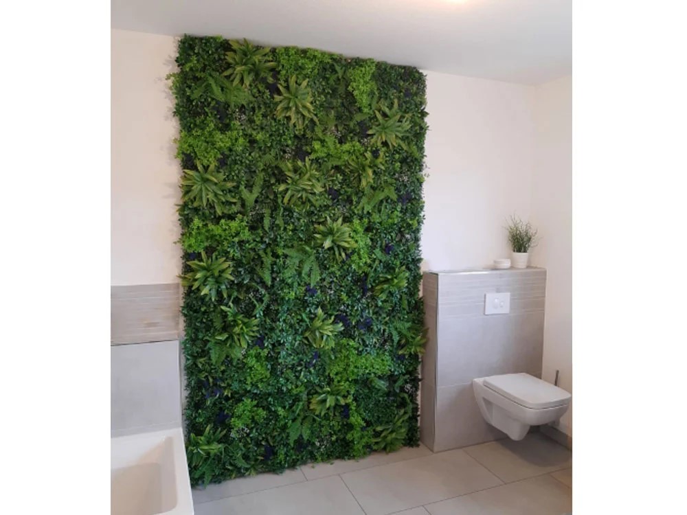 Umělá živá stěna LEVANDULE s mixem rostlin je vyráběna v luxusní kvalitě s nejrealističtějším designem. Zelená stěna je dodáván jako propojitelný dílec 50x50cm v celkové ploše 0,25m2. Dílce lze jednoduše upravit nůžkami, nebo štípačkami na požadovaný rozměr. Dílce se spojují pomocí integrovaných otvorů a příchytek, lze tak vytvořit nekonečně velkou na sebe navazující plochu. Nosná kostra je tvořena plastovým rastrem. Velmi snadná instalace. Materiál listů: PVC. Dekorativní část umělé zelené stěny tvoří mix různých rostlin. Mnoho velikostí, tvarů a barev zajišťuje vysokou realističnost. dokonale tak imitují skutečné rostoucí živé stěny. Rozložení listů je pohledově jednostranné. Zcela netoxické a bez těžkých kovů. Vhodné pro vytvoření plotů, ale také také jako dekorace do komerčních prostor, hotelů, restaurací, ale i bytů a domů. Díky této živé stěně vytvoříte snadno vertikální zahradu. Cena za 1ks 50x50cm. Vyrábí se ve 4 provedeních A, B, C, D při objednávce nelze zvolit konkrétní typ, bude odeslán náhodný mix.