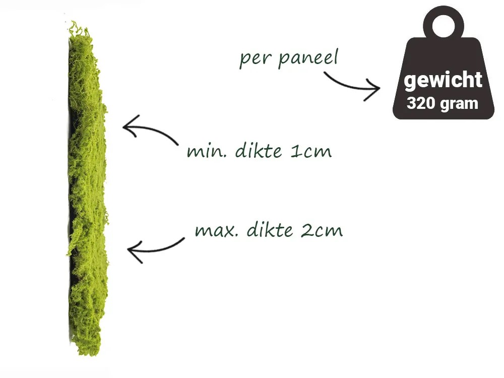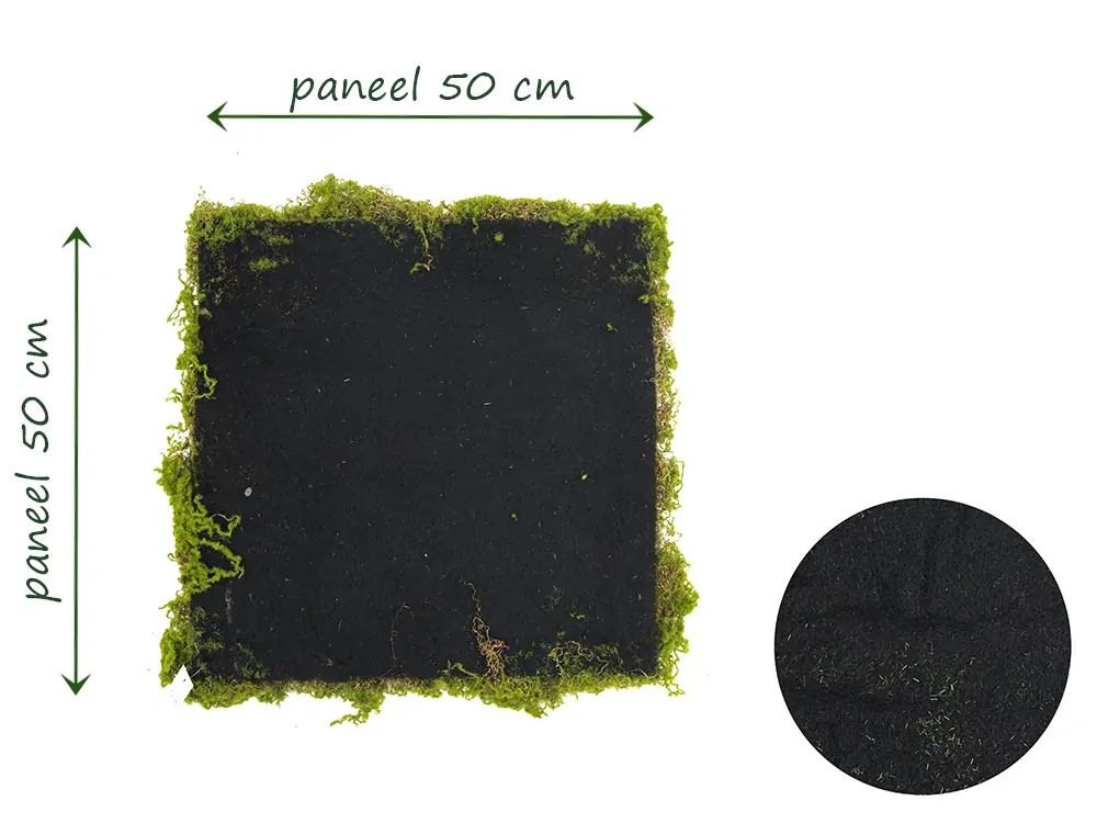 Umělá živá stěna s dokonalou imitací povrchu mechu. Vyráběno v luxusní kvalitě s nejrealističtějším designem umělého mechu. Zelená stěna - umělý mech je dodáván jako velmi flexibilní čtverec 50x50cm s tloušťkou cca 1-2cm v celkové ploše cca 0,25m2. Idální produkt pro vytvoření živé mechové stěny, vertikální zahrady, nebo mechových obrazů ale s výhodami umělých rostlin. Dílec lze jednoduše upravit nůžkami na požadovaný rozměr, nebo tvar. Hmotnost pouze 0,2Kg na 0,25m2, nezatíží tedy stěnu a lze snadno instalovat i na sádrokartonové zdi.